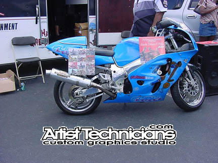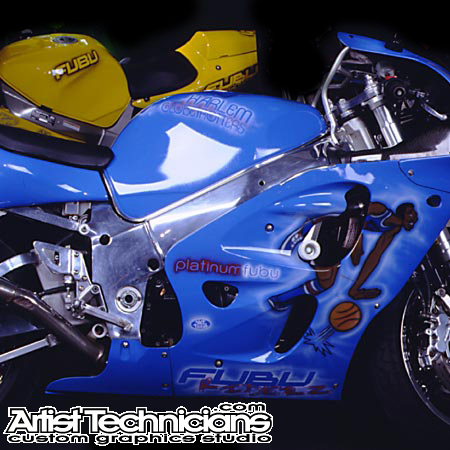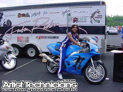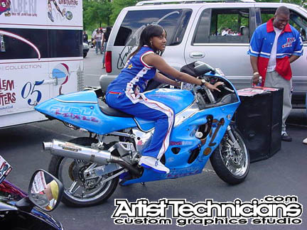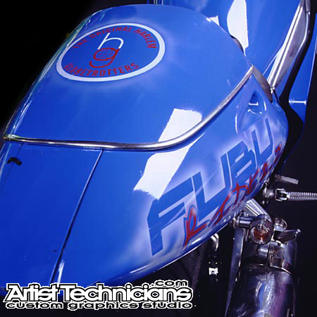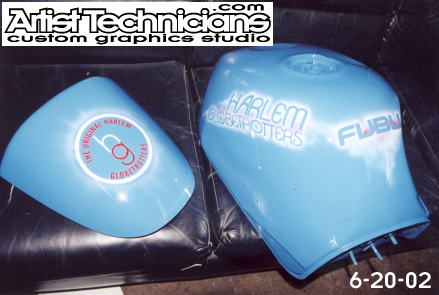"Harlem Globetrotters" blue motorcycle
